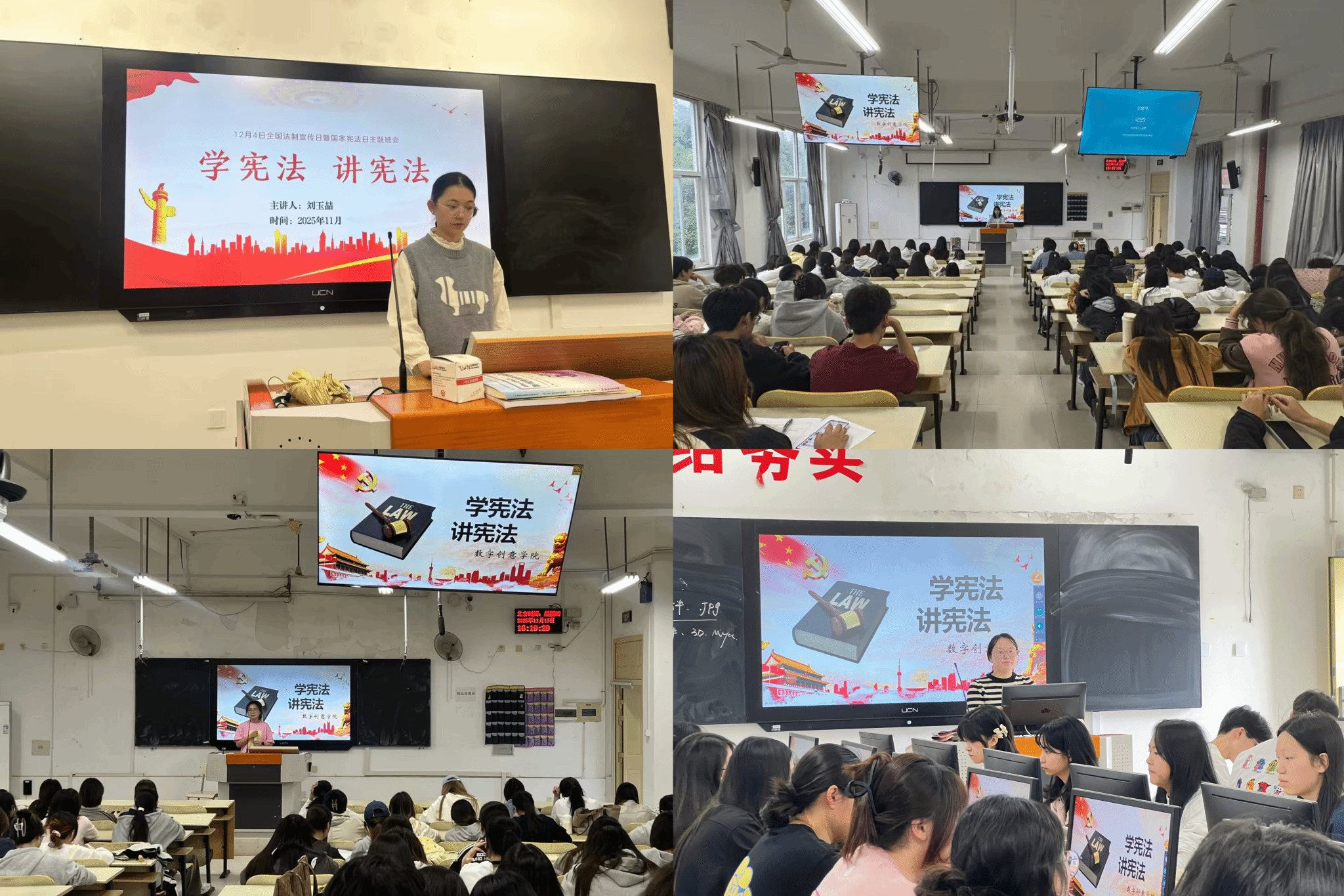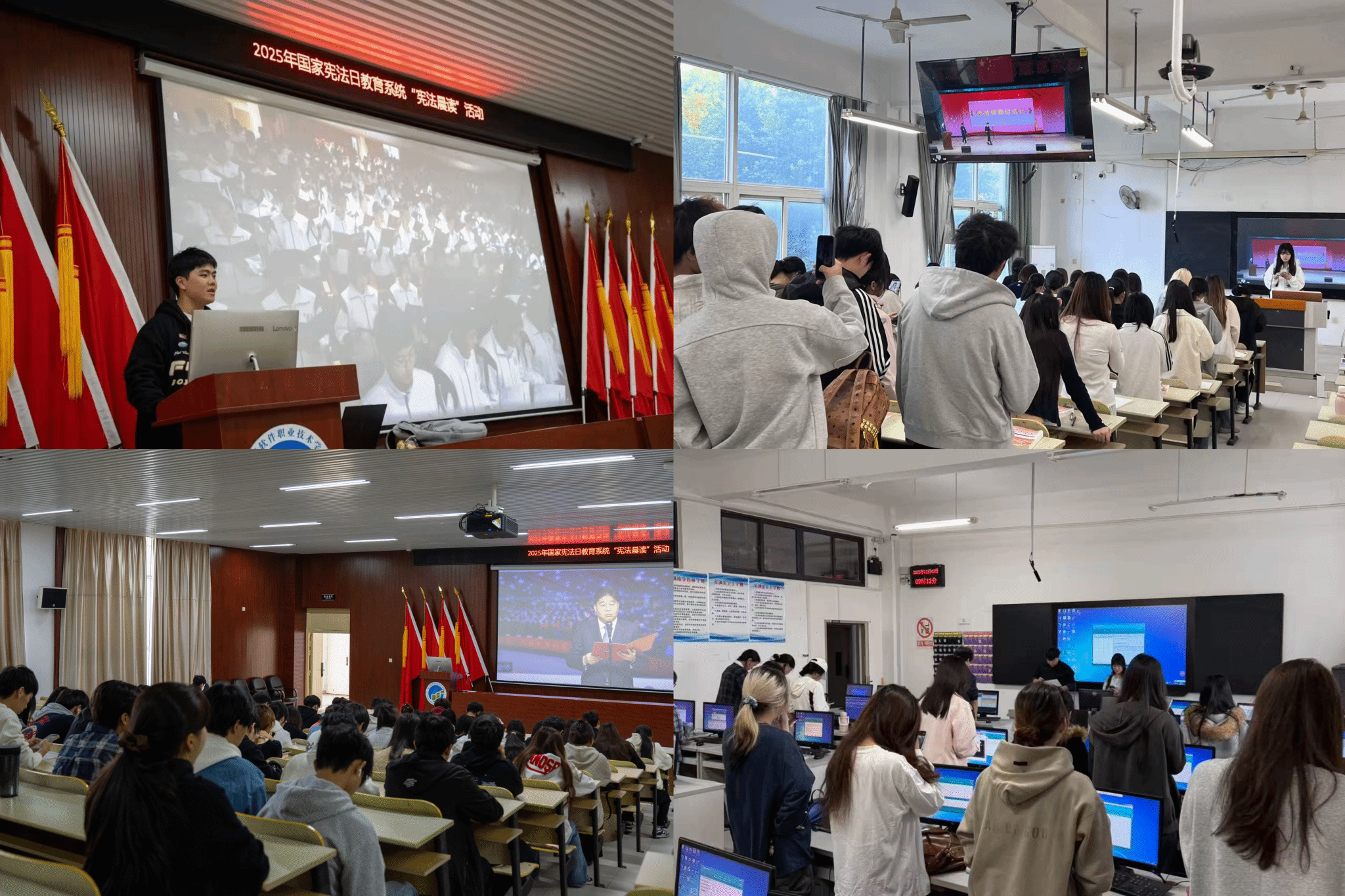 12 月 4 日,我国第十二个国家宪法日如约而至。为深入学习贯彻党的二十届四中全会精神与习近平法治思想,切实将宪法精神融入青年学子成长血脉,12 月 1 日至 7 日 "宪法宣传周" 期间,我校精心策划、多维发力,组织开展了覆盖全员的系列法治教育活动,让 "尊法、学法、守法、用法" 的理念在校园蔚然成风。
