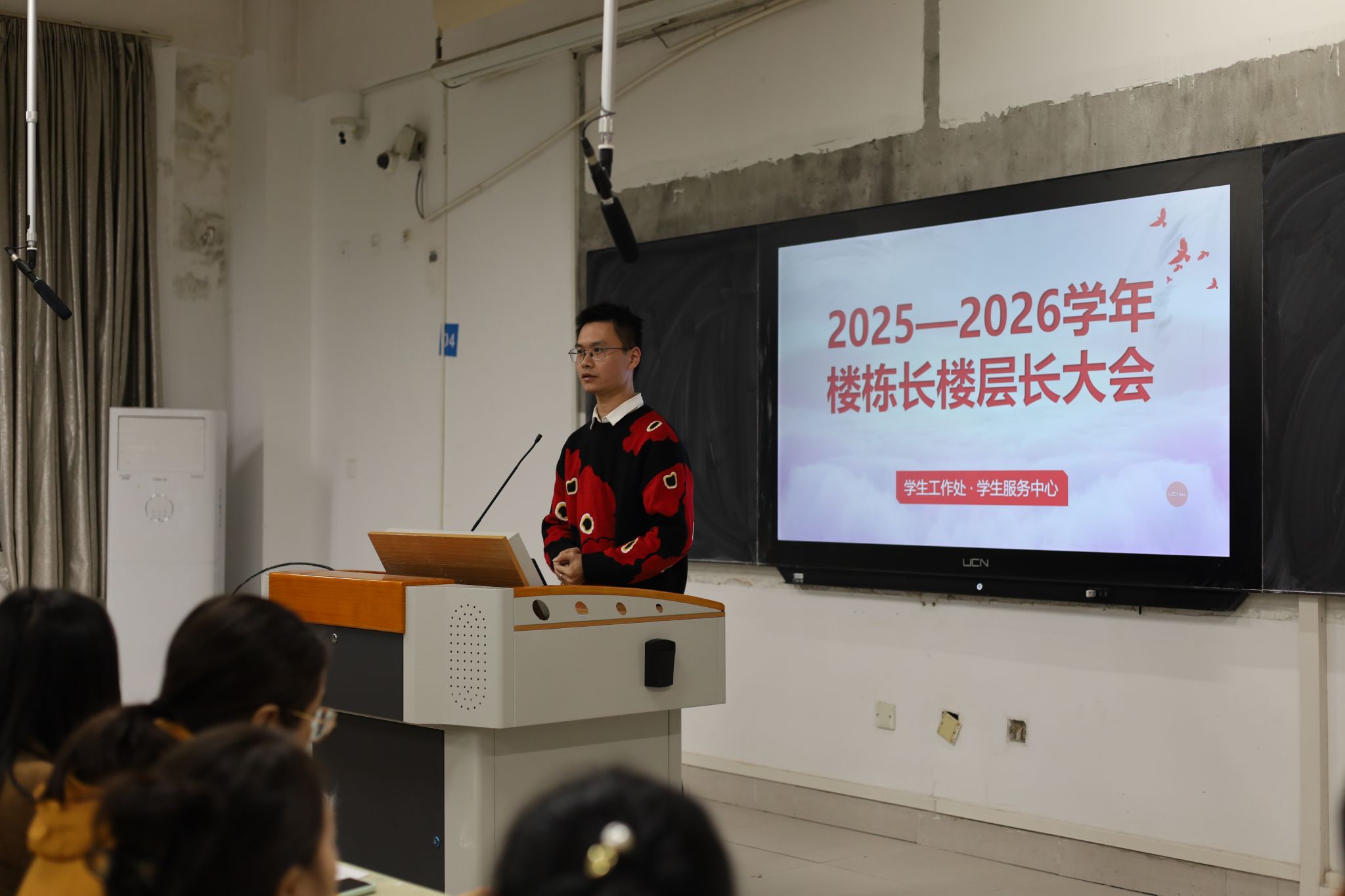 学生服务中心杨郑军老师则以自身大学经历为蓝本,讲述了自己主动承担校园活动组织、志愿服务等工作的成长故事。他用亲身感悟激励在场学生干部,要勇于担当、主动作为,在宿舍管理工作中锤炼责任意识与综合能力,将个人成长融入校园建设,以实际行动诠释青年学生的责任与担当。