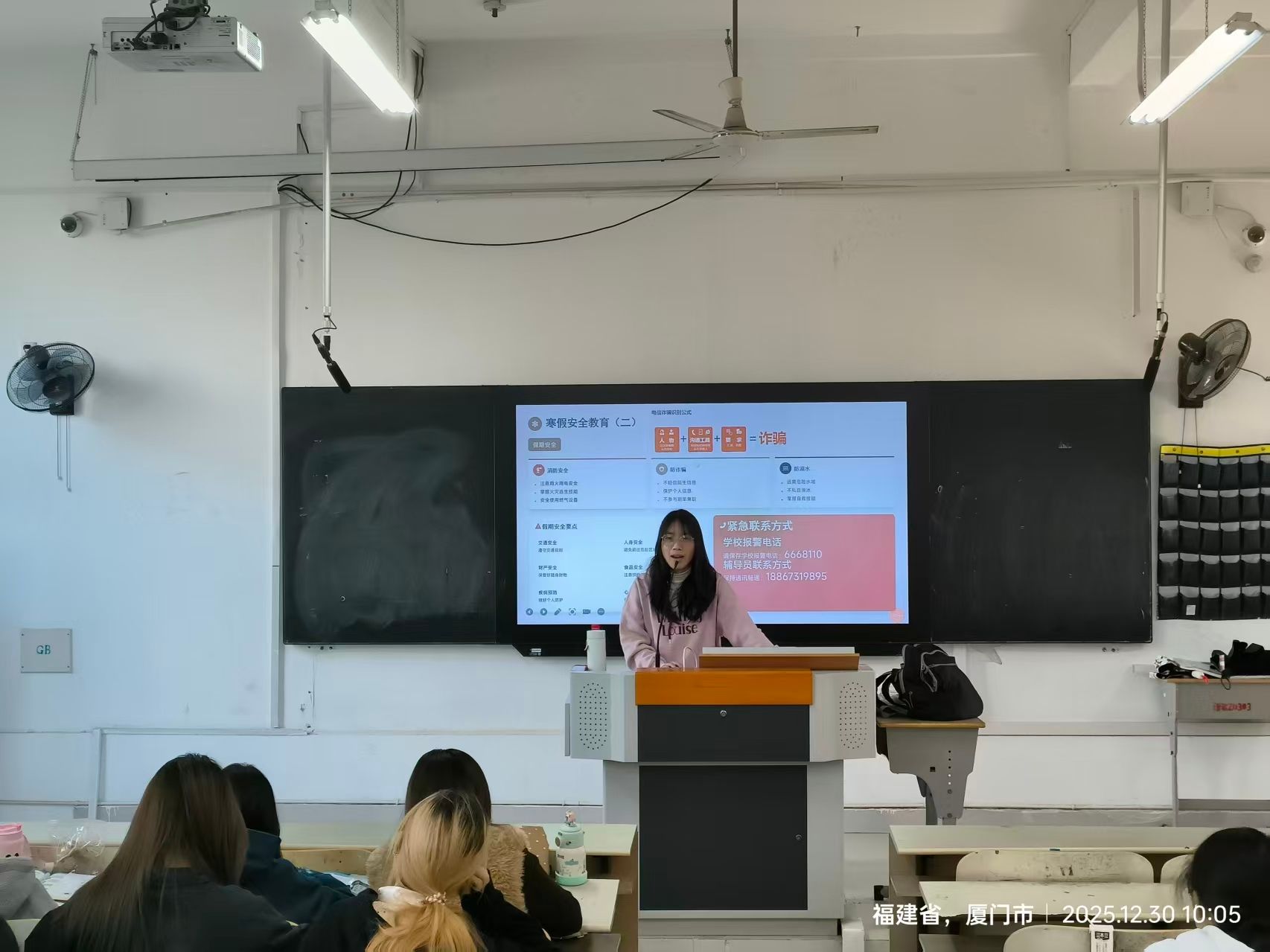 立足期末及假前安全关键期,班会同步开展全方位针对性安全教育。